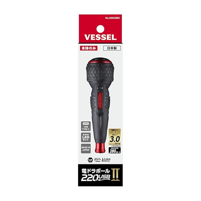 ベッセル(VESSEL) 電動ボールグリップドライバー 〈本体のみ〉 電ドラボールⅡ USBタイプCで充電 最大出力トルク3N・m 220USBC