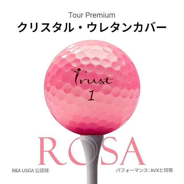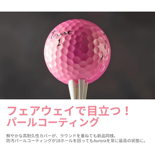 商品名:TrustトラストゴルフボールNew Rosa(ローサ) 被らない 目立つ 飛ぶ 曲がらない 止まる 柔らかい打感 ウレタンカバー3ピースダイナミックコア 4ダース(48個入り) ゴールドピンク