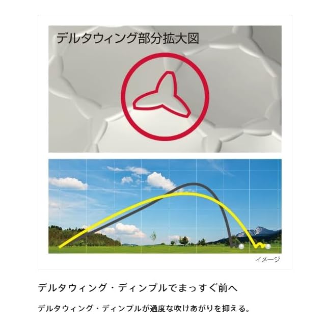 素材:コア/ソフトグラデーショナルコア、インナーカバー/高反発アイオノマーインナーカバー、アウターカバー/高耐久ソフトアイオノマーカバー、ピース構造:アイオノマーカバーソフト3ピース