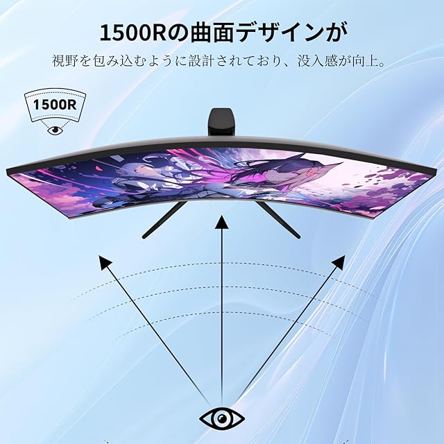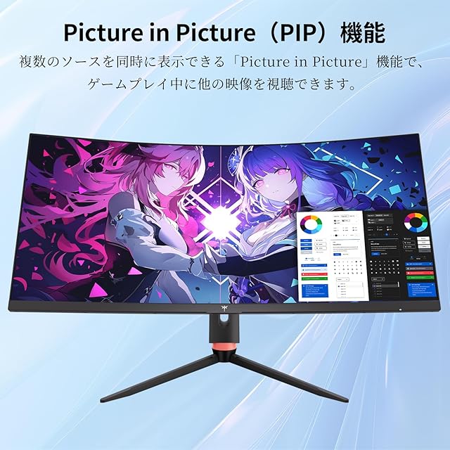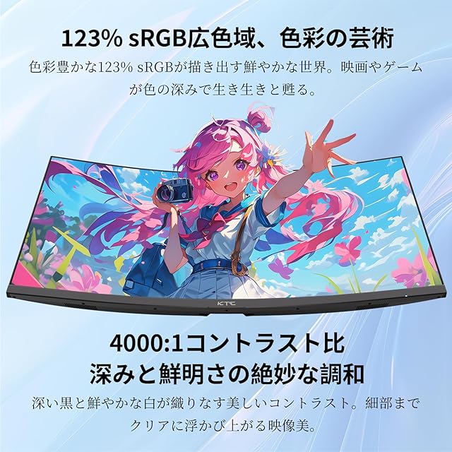 KTC 34インチ ウルトラワイド曲面ゲーミングモニター - 没入感と高性能の融合 【超精細ウルトラワイド表示】 3440×1440のWQHD解像度を実現した34インチ曲面ディスプレイ。21:9のアスペクト比と1500Rの深いカーブが視野を包み込み、ゲームや映画に完全没入できる臨場感を提供します。 【競技レベルの高速性能】 180Hzの超高リフレッシュレートと1msの応答速度を両立。FPSやレーシングゲームなど、高速アクションが要求されるゲームでも、遅延のない滑らかなプレイが可能です。 【高度な映像技術】 123% sRGB広色域と4000:1の高コントラスト比により、豊かで深みのある色彩表現を実現。Adaptive Sync互換対応で、画面の乱れを完全に抑制します。 【マルチタスクに最適】 Picture-in-Picture(PIP)機能を搭載。ゲームプレイ中にガイド動画を表示するなど、効率的なマルチタスクが可能です。 【快適設計】 ブルーライト軽減とDC調光(フリッカーフリー)技術を採用。長時間のゲームセッションや作業でも、目に優しい使用感を実現しています。 主な仕様 ・パネルタイプ:VA ・解像度:3440×1440 (UWQHD) ・画面サイズ:34インチ ・アスペクト比:21:9 ・曲率:1500R ・リフレッシュレート:165Hz ・応答速度:1ms ・色域:123% sRGB ・コントラスト比:4000:1 ・対応技術:FreeSync/G-Sync互換 ・特殊機能:PIPモード ・アイケア:ブルーライト軽減/DC調光
