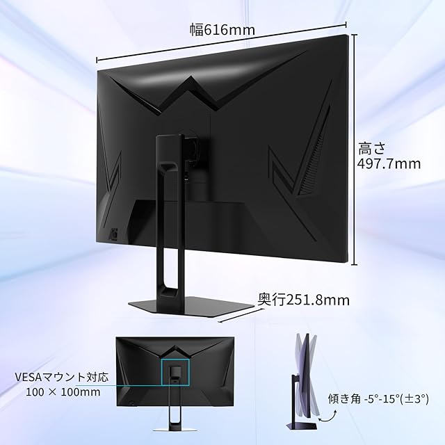 豊富な接続オプション:HDMI2.0×2、DisplayPort1.4×1、イヤホン端子 、USB2.0を装備し、VESAマウント対応で設置の自由度が高い