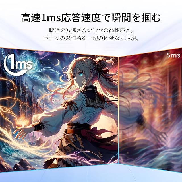1ms(GTG)超高速応答速度:高速アクションシーンでも残像を最小限に抑え、クリアな映像を提供