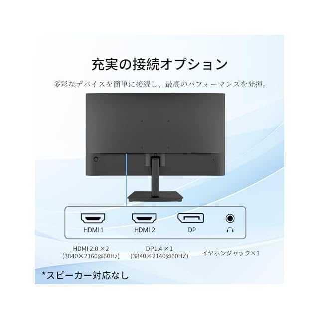【多彩な接続オプション&スリム3面ベゼル】HDMI 2.0×2、DisplayPort 1.4×1を装備し、PCやゲーム機など複数のデバイス接続が可能。VESA 100mm×100mm規格に対応しており、モニターアームを使用した自由な設置が行えます。超狭額縁(3面マイクロベゼル)デザインでマルチディスプレイ環境もスムーズ。