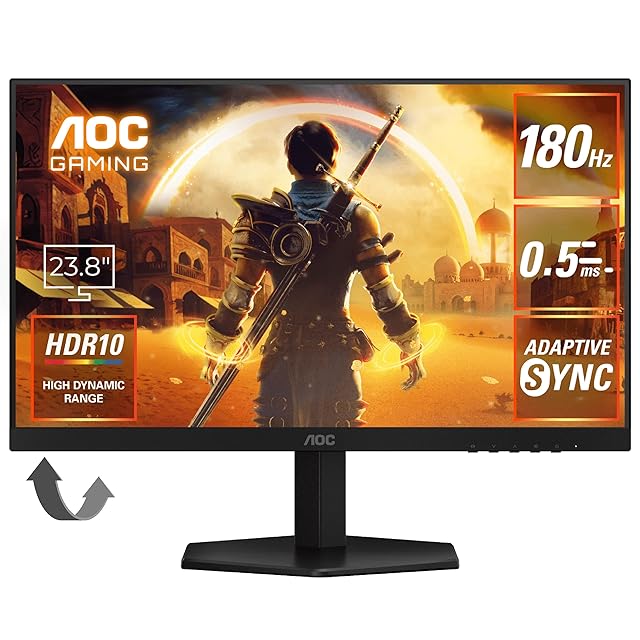 AOC ゲーミングモニター 24G42E/11, 23.8インチ, フルHD/1920×1080@180Hz, 応答速度0.5ms(MPRT), Fast IPS, HDMI2.0 x 1/ DP1.4x1,ブルーライト低減, フリッカーフリー, Adaptive Sync, HDR10対応, 3年