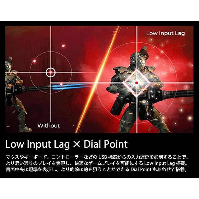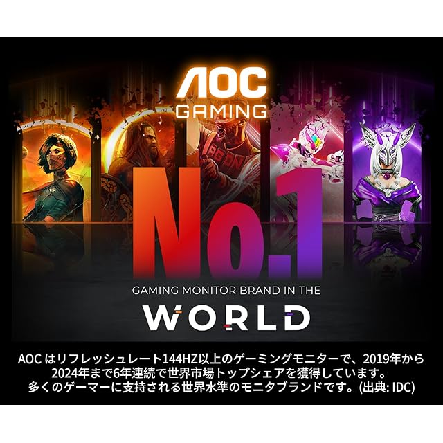 【ゲームカラー】 輝度や色階調をゲームに合わせてできめ細かく調整が可能、ゲームに合わせて最適な調整にすることができる機能です。【Dial Point】 画面中央に照準を表示し、より的確に的を狙うことができる新機能。FPSユー ザーには心強い機能です。【USB機器の入力速度向上機能「Low Input Lag」 (表示遅延読み込み機能)】 マウスやキーボード、アーケードコントローラーなどのUSB機器からの入力遅延を抑制することで、より思い通りのプレイ を実現し、快適なゲームプレイを可能にする機能です。【AOCについて】 リフレッシュレート144hz以上ゲーミングモニター世界において、2021~2023年連続TOPシェアを記録。多くのゲーマーに選ばれたトップクラスのゲーミングブランドです。