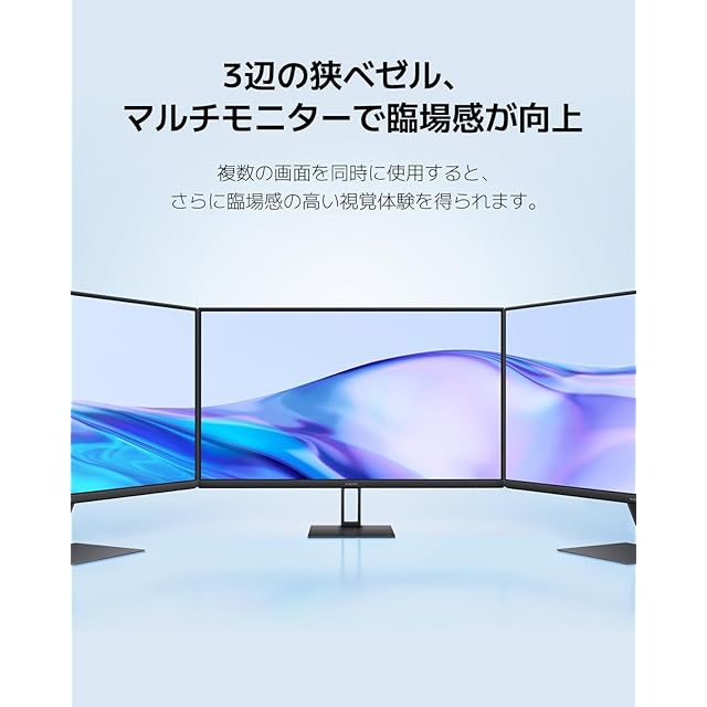 【マルチモニターで臨場感が向上】3辺に独自の狭ベゼルデザインを採用しているため、視野角が大幅に改善し、いっそう臨場感にあふれる体験を得られます。複数の画面を同時に使用すると、さらに臨場感の高い視覚体験を得られます。