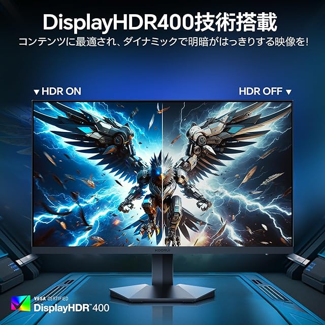 商品名:KOORUI ゲーミングモニター 24.5インチ IPS 200Hz 1ms GTG HDR400 非光沢 フルHD 90%DCI-P3ブルーライト軽減 HDMI DisplayPort Adaptive Sync VESA対応 G2511P