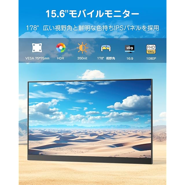 商品名:Yodoit モバイルモニター 自立型 15.6インチ VESA対応 ポータブルモニター 軽量 持ち運び便利 100%sRGB 1080P FHD Tpye-C/mini HDMI スピーカー内蔵 Switch/PS4/PS5/XBOX/PC/Macなど対応 (ブラック)