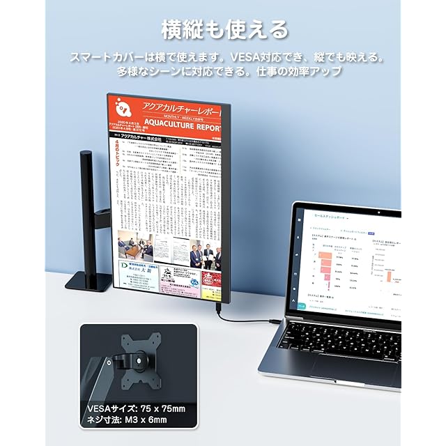「HDR&アイケア」ハイダイナミックレンジ(HDR)テクノロジーにより、高いレベルのコントラストと明るさを提供します。このポータブルモニターには、目の疲労を軽減する低ブルーライト技術も搭載されています。長時間を使用しても、目に対しての刺激はやさしいです。仕事、会議、ゲーミング、サブモニター等のシーンに大活躍できます。VESA対応でき、ポートレートモードが利用可能となります。M3×4mmネジを使用してください。ネジを打ち込む時、力を入れすぎないように、力を入れすぎると画面本体を破壊する可能性があり、呉呉も注意してください。また、絶対に電動ドライバーなどでは締め付けないようご注意下さい。