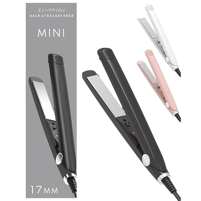 「美容師推薦」ヘアアイロン ミニ 2way ストレート/カール 急速加熱 マイナスイオン搭載 ツヤ髪 ヘアケア コテ 17mm 150g超軽量 持ち運び便利 ヘアスタイリング 海外対応 男女兼用 前髪/毛先にお勧め 家庭/旅行/出張/通勤用 贈り物 (ブラック)