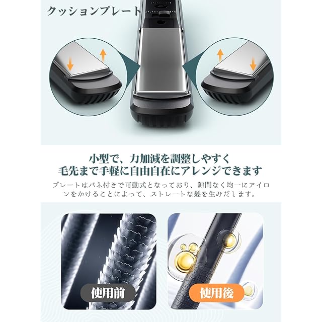 【こだわりたい前髪のアレンジもスム-ズに】印象を決める前髪や顔周りは、特にこだわりたい部分小さくなった分、アレンジがスム-ズにできるようになつています。男性の方にもおすすめです。 【忙しい朝でも素早くスタイリングができる】巻き髪アイロンは短時間で髪をスタイリングできるため、忙しい朝でも手軽にヘアセットが可能です。使用方法は非常に簡単で、初心者でもすぐに使いこなせます。これにより、誰でも手軽にプロフェッショナルな仕上がりを実現できます。 【自由自在なヘアスタイルに対応】カール、ウェーブ、ストレートなど、さまざまなヘアスタイルを簡単に作り出せます。スタイリングジェルと倂用するとさらに効果的に! 【わずか150ℊで持ち運びが便利】巻き髪アイロンはコンパクトで軽量なデザインで、いつでもどこでもスタイリングが可能です。100~220V海外対応で、旅行や外出先でも変圧器なしでご利用いただけます。 【髪にツヤを与える】髪にツヤを与えるための特殊なコーティングが施されており、スタイリングしながら髪を美しく保つことができます。