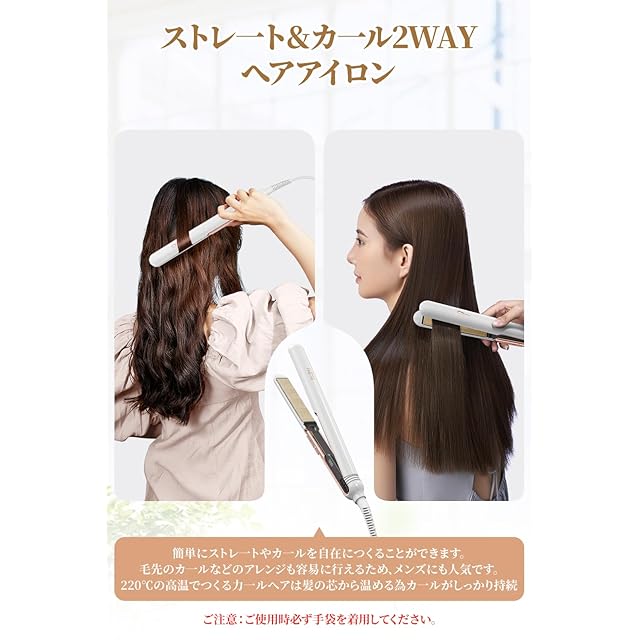 【ストレート & カール 2way ヘアアイロン】25mmの万能プレートで、ショートからロングヘアまで対応。ストレートアイロンとカールアイロンの2wayモデルで、自由にスタイリングを楽しめます。360度回転式コードで使いやすさ抜群。プロが設計した信頼のアイテムです!