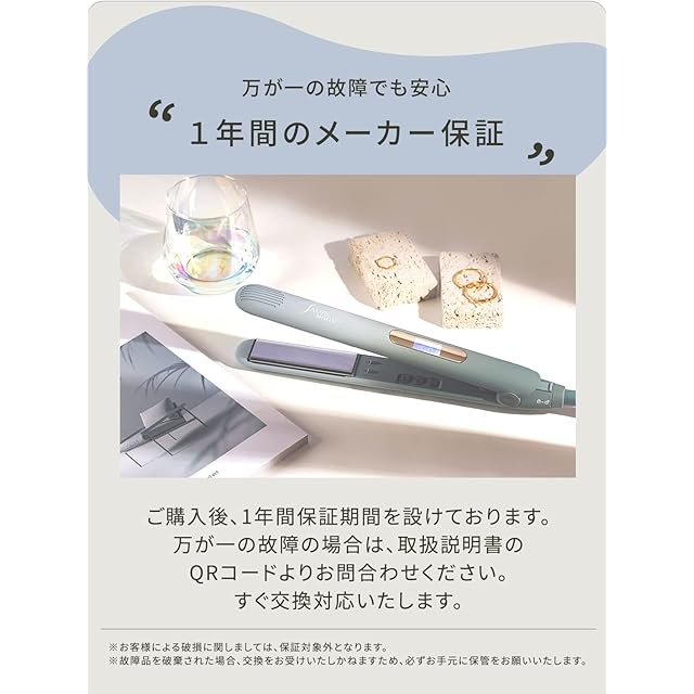 ✅【マイナスイオン 発生器搭載】高密度マイナスイオン発生器を搭載しているので、髪のダメージを抑えながら ストレート カール スタイル にすることができる 髪が 痛みくい コテ アイロン です。痛まないヘアアイロン をお探しの方に◎ ※電源を入れた際にジーっと音がする場合がございますが、これはマイナスイオン発生器の音ですので不良ではございません。
