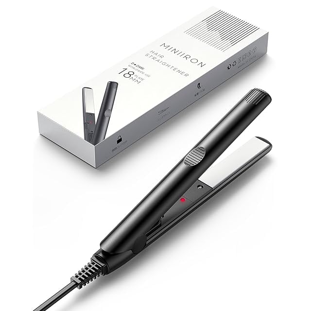 RUNCTY ストレートヘアアイロン ミニ 超軽量 2WAY ヘアアイロン 前髪 カール ストレート 高温220℃ 急速加熱 マイナスイオン搭載 ツヤ髪 ヘアケア コテ 18mm コンパクト 持ち運び便利 ヘアスタイリング ワンタッチロック付き 海外対応 レディース メンズ 誕生日 プレゼント (ブラック)