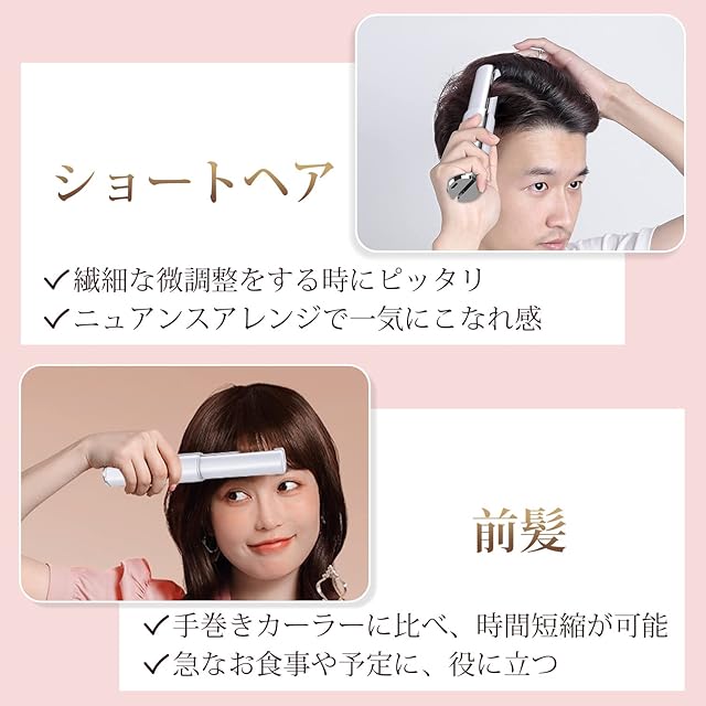 【2way カール&ストレート】一本で、カールヘアにしたいとき、ストレートに決めたいとき、ヘアアイロンを使えば気分に合わせて自在にヘアスタイルをアレンジできます。また、ションプレートは髪に優しいセラミックコーティングを採用し、髪が傷つくのを防ぎます。初心者の方でも思い通りのヘアセットが可能になります。メンズ レディース両用タイプです。