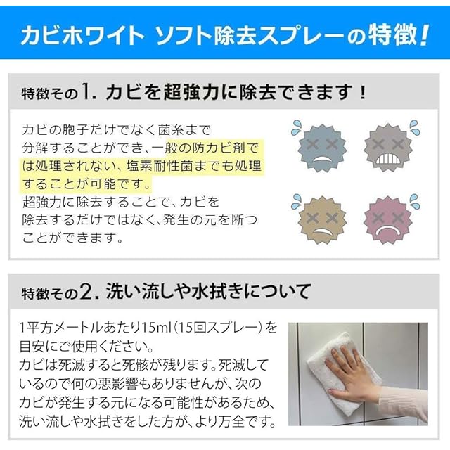 カビホワイト カビソフト除去スプレー カビ取り剤[木材・畳・すのこ・マットレス・カーテン] (300ml)