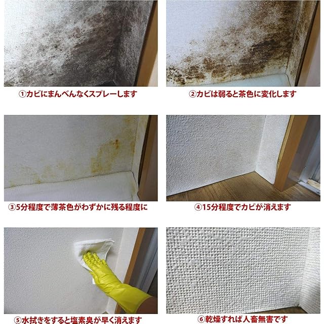 おそうじ関連業務30年以上、ネット通販15年以上が開発した本格派のカビ取り剤になります。黒カビ 青カビ 赤カビ 緑カビ 白カビを強力除去(衛生微生物研究所調べ)。目に見えないカビの菌糸や薬品に耐性を持った塩素耐性菌まで除去するため、次のカビが生えづらく最長3か月程度の防カビが期待できます。