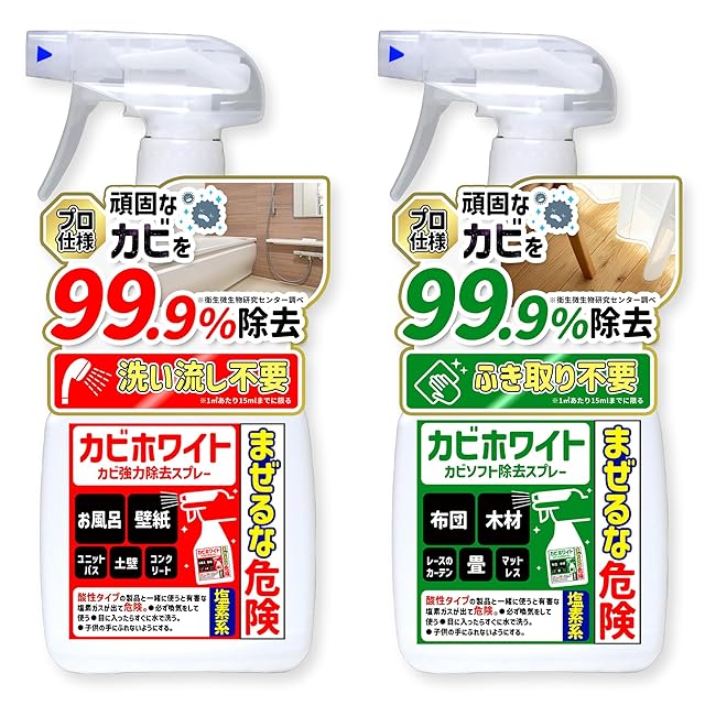 商品名:カビ取り カビホワイト カビ強力除去スプレー450ml / カビソフト除去スプレー450mlのカビ取り剤セット [お風呂・お部屋の壁紙・土壁・タイル・木材・マットレス・畳]