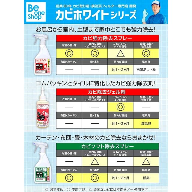 【開発メーカーについて】おそうじ関連業務30年以上、ネット通販15年以上の企業、ビーワンコーポレーションが開発した本格派のカビ取り剤になります。