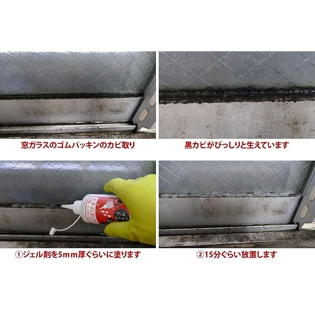 【本製品について】ゴムパッキン、タイル目地、シリコンコーキング、シーラント、シャワーホースなどのカビ取り剤です。カビ取り後は水で洗い流すか、水拭きが必要になります。密着ジェルが張り付いて垂れ落ちずに留まるため、良くカビが取れます。