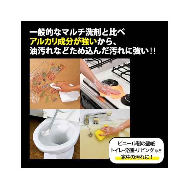 【スーパー強力 !】プロ仕様の強力洗剤です。これ1本で家中OK!油汚れもスルッと落ちます。キッチン、フローリング、トイレ、浴室、ビニール壁など、家中に使えます。