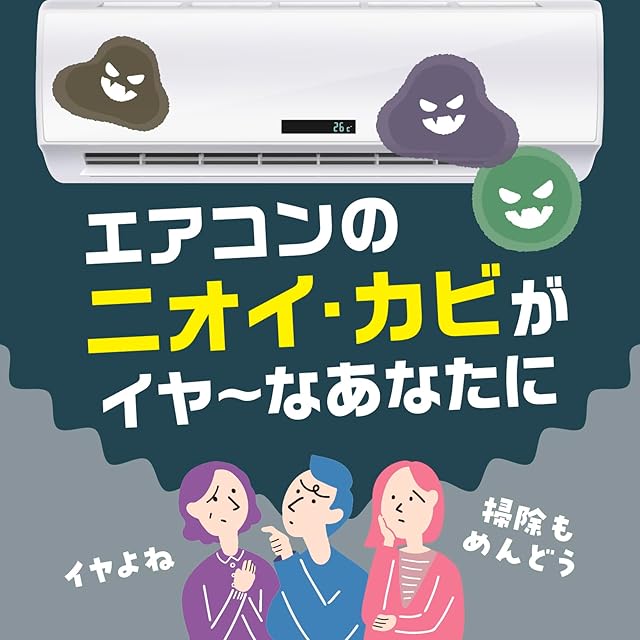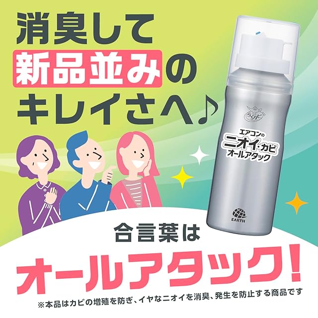 吹出口から内部へ向けて約3回シュッするだけでカビの増殖を防ぎ、イヤなにおいを消臭・発生を防止するエアコン用スプレー
