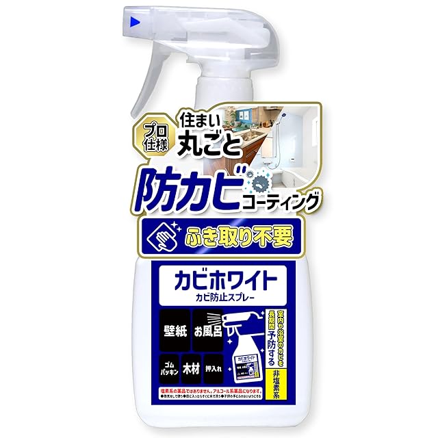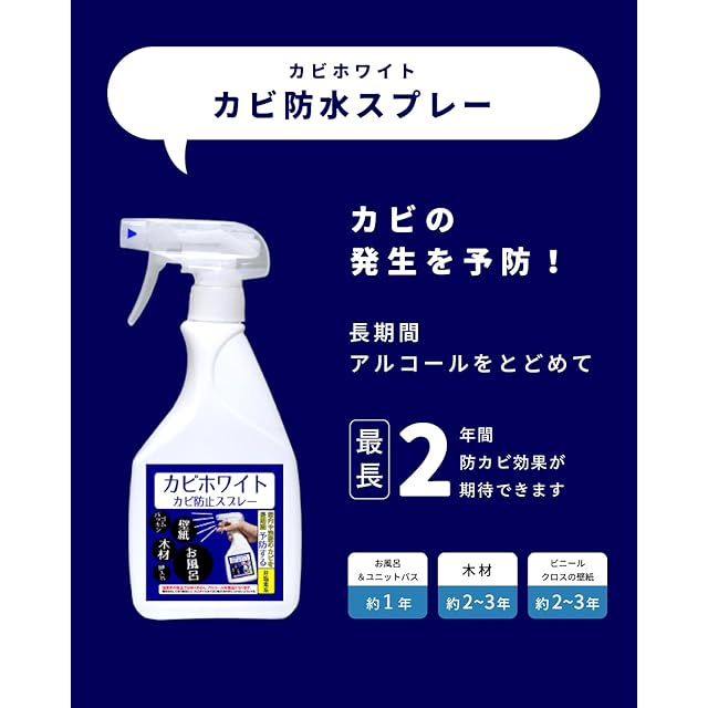 【防カビ期間について】バスルームでも約1年間、室内なら約2~3年の防カビ効果が期待できます(湿気や環境によって防止期間は変わります)。※お風呂でも市販のお風呂洗剤とブラシを使った一般的なそうじレベルなら薬剤が剥がれることはありません。