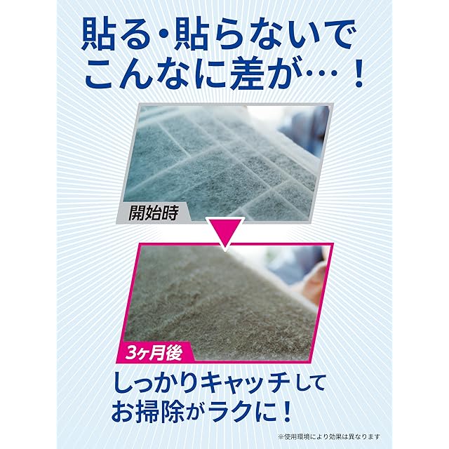 ●セット内容:エアコンフィルター1枚(約40cm×70cm)・取付用両面テープ8枚 *1 全ての汚れを防ぐわけではありません *2 ホコリ・花粉・油煙をふせぐことによる(カビ汚れは除く) *3 あくまでフィルターに接触したときの効果。全ての菌・ウイルス・臭いに効果があるわけではありません。全て試験環境下において。