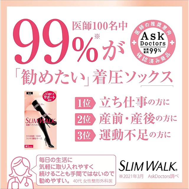 【スリムウォークとは】スリムウォークは、はくだけで 美脚 や 足 をスッキリしてくれる 着圧 レッグウェア です。風合いや素材にまでこだわった日本基準の高品質・高機能で、最高の はきごこち と 機能 を追求。