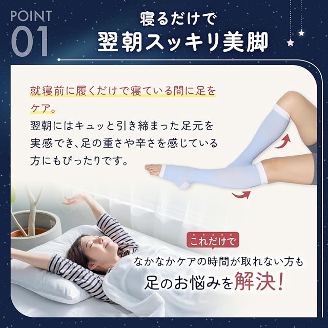就寝用に開発されたおやすみサポート設計だから寝る時でもじんわり着圧