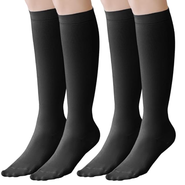 [Maison Peony] 着圧ソックス ハイソックス 引き締め コンプレッション 靴下 22cm~26cm ひざ下 看護師 オフィス 事務 仕事 日本製 (22-23.5cm, ブラック(2足組))