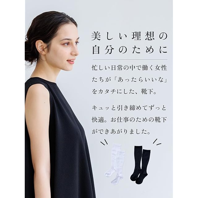 商品名:[Maison Peony] 着圧ソックス ハイソックス 引き締め コンプレッション 靴下 22cm~26cm ひざ下 看護師 オフィス 事務 仕事 日本製 (22-23.5cm, 黒(5足組))