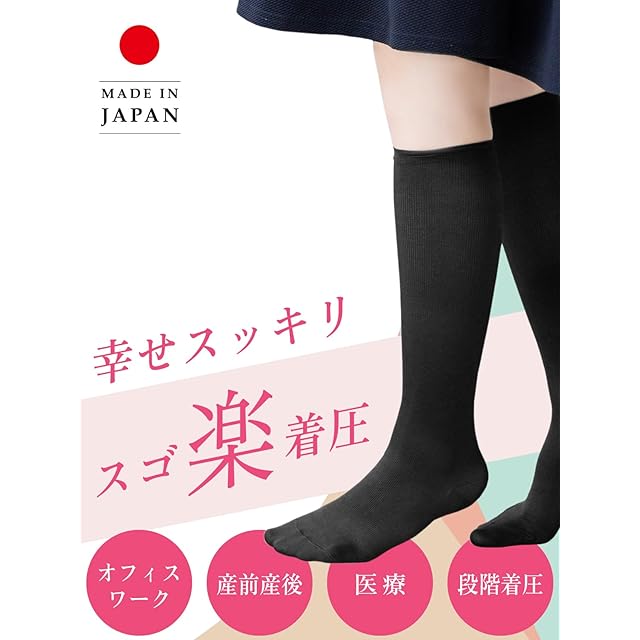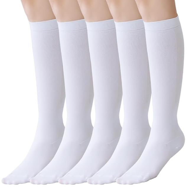 [Maison Peony] 着圧ソックス ハイソックス 引き締め コンプレッション 靴下 22cm~26cm ひざ下 看護師 オフィス 事務 仕事 日本製 (24-26cm, 白(5足組))
