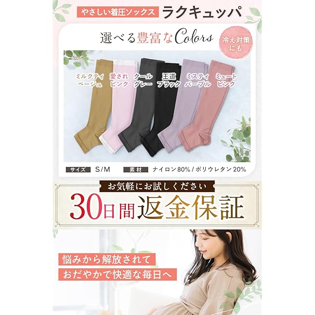 【やさしい着圧ソックス】Hoippuの着圧ソックス「ラクキュッパ」は、むくみやすい妊婦さんの脚をやさしく包み込みます。苦しさがないので、1日中快適に履くことができます。