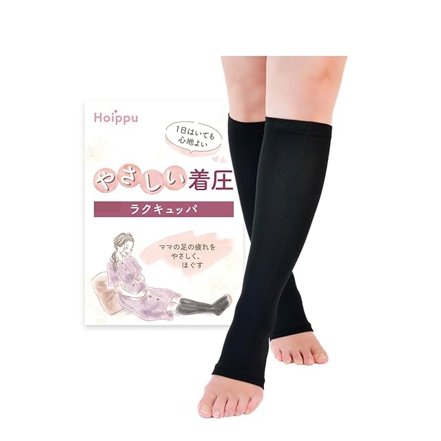 【やさしい着圧ソックス】Hoippuの着圧ソックス「ラクキュッパ」は、むくみやすい妊婦さんの脚をやさしく包み込みます。苦しさがないので、1日中快適に履くことができます。