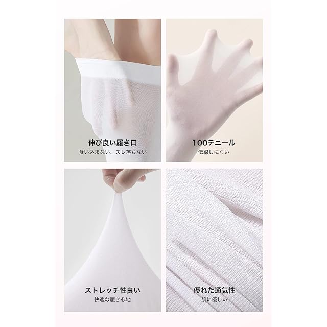 ◆【ストレッチ性抜群 心地よいフィット感 】ストレッチ性抜群で肌に吸い付くよう足にフィットします。持ちよくなじみなので、窮屈感なく、動きやすく,全然不快感ありません。やわらかく伸びるからくるくるなりにくいです。タイツの窮屈から解放したいお方には是非オススメします。踵の位置成形なしでも足のサイズ選びません。