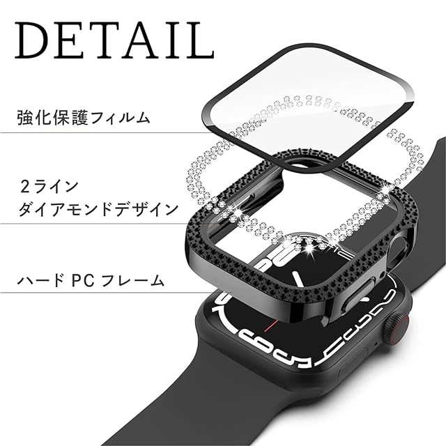商品名:アップルウォッチ 用 カバー キラキラ 38mm 40mm 41mm 42mm 44mm 45mm 46mm SE SE2 (ブラック, 40mm)