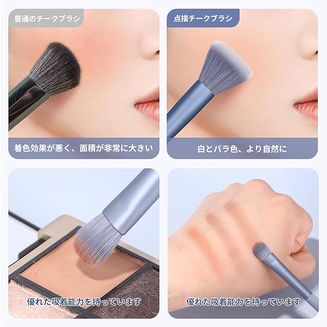 【上層の品質】 さらりとした質感で粉含みが非常に良く、化粧跡を残さず美しい化粧仕上がりを実現します。 また、天然素材を使用したブラシハンドル、グリップ力が非常に高く、丸くて滑らかで質感があります。 高品質のアルミニウムチューブ、頑丈で耐久性があります。 お掃除も簡単です。