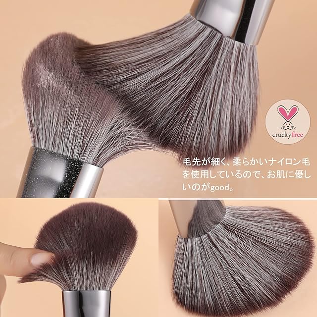 【肌に優しい毛質】毛先が細く、柔らかいナイロン毛を使用しているので、お肌に優しいです。毛先のウェーブが粉含みをよくし、まとまった綺麗な仕上がりになります。細かなところから全体まで、このブラシひとつでメイクの仕上げに。チークブラシとしても使うことができるので、兼用してもいいですね。