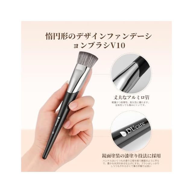 DUcare ドゥケア ファンデーションブラシ シェーディングブラシ 楕円形 メイクブラシ フェイスブラシ 化粧筆 フラットトップタイプ 高級のタクロンを使用 時短ベースメイクへ V10