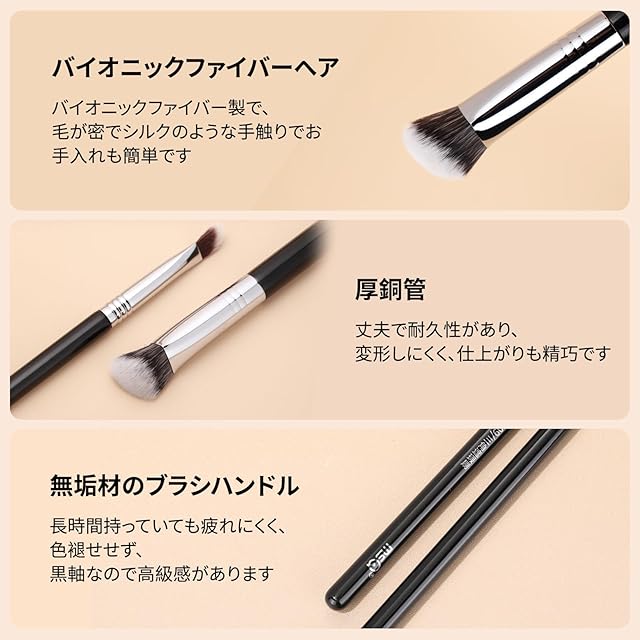 【2ピースのコンシーラーブラシセット】エクストラオーディナリーシリーズ115のコンシーラーブラシは毛が密集しており、広い範囲のシミやくまをカバーするのに適しています。エクストラオーディナリーシリーズ 109 コンシーラーブラシは、押したときによりフィットする三角形のブラシヘッドデザインを採用しています。フェイシャルカーブブラシは、ブラシ跡を残さずに顔に優しくブレンドする柔軟で密集した毛を備えています。