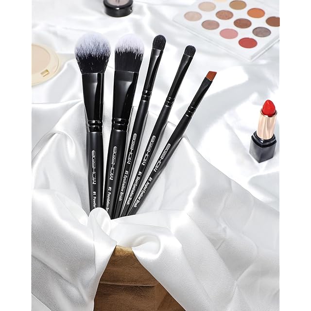 EIGSHOW メイクアップブラシ5点セット、ベーシックメイクブラシエッセンシャルメイクブラシ、パウダー、ファンデーション、シャドウ、毎日のメイク用アイライナーブラシ (ブラック)