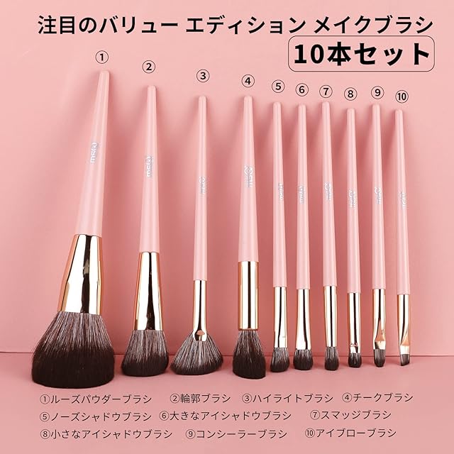 【MSQ最強の10本セット化粧ブラシ】メイクブラシ10本かわいいピンクセット含むパウダーブラシ、ファンデーションブラシ、コントアーブラシ、ノーズシャドウブラシ、アイシャドウブラシ、コンシーラーブラシ、ペンシルブラシそしてあなたが毎日の化粧に必要なすべて となり日常メイクからフルメイクまで、このワンセットで満足。どんなシュチュエーションにも応じた化粧ができます!