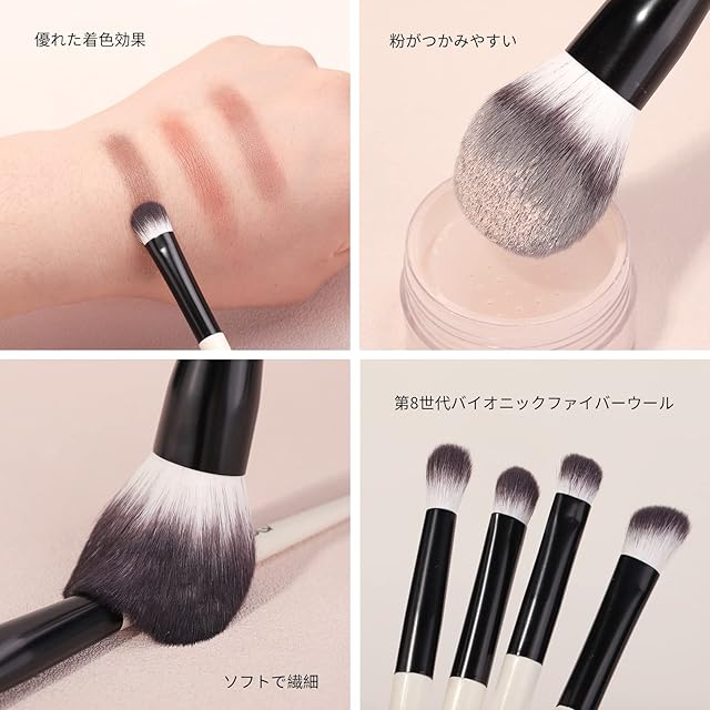 【高品質のブラシ】高級タクロン(タクロン100%)。 メイクブラシはすべて手作り。 ブラシは高級なタクロン素材を使用しており、非常に柔らかく使い心地が良く、毛足が密でパウダーの保持力に優れています。 動物アレルギーの方や敏感肌の方にも安心してお使いいただけます。 ブラシチューブは、耐久性と耐摩耗性に優れた高硬度アルミニウム合金材料で作られています。 ハンドルは手触りが柔らかく、指紋がつきにくく持ちやすいです。。