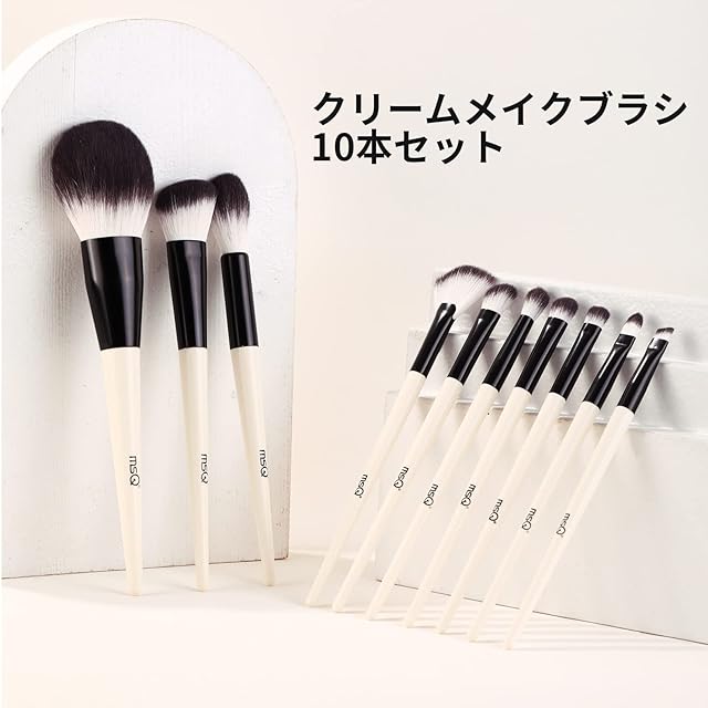 MSQ 10本 メイクブラシ セット ブラシ フルセット コンシーラー ルース パウダー ブラシ ブラッシュ ハイライト アイシャドウ ブラシ ポータブル メ化粧ブラシ 初心者化粧筆人気 ソフト ヘア ビューティー メイク ツール (クリーミーな色)