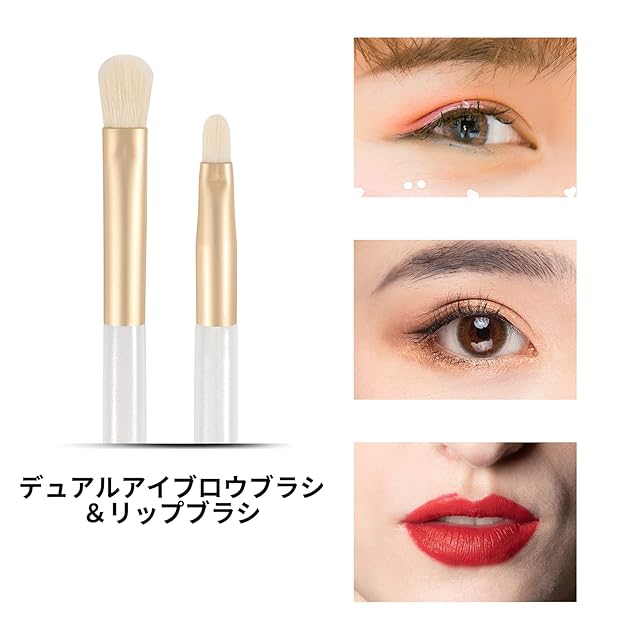 【使い方】パウダーアイシャドウをブラシにとりお肌におのせ下さい。大ブラシはぼかしやグラデーションづくりに。ブラシの先端を沿わせるように使用すると繊細なラインを引くことができます。小ブラシは涙袋への使用や、先端を使ってラメを置くなどの細かな表現に適しています。