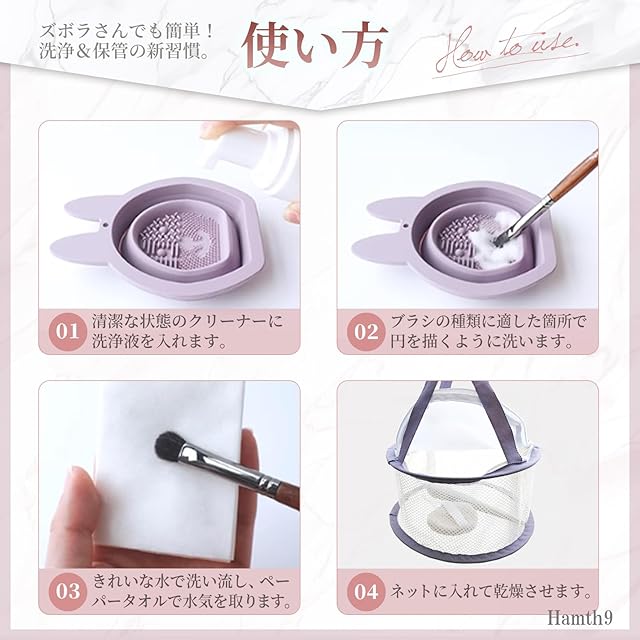 商品名:Hamth9 メイクブラシクリーナー メイクブラシ 洗浄 化粧ブラシクリーナー シリコンボウル 乾燥ネット (パープル)