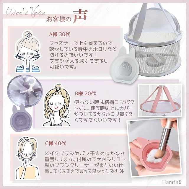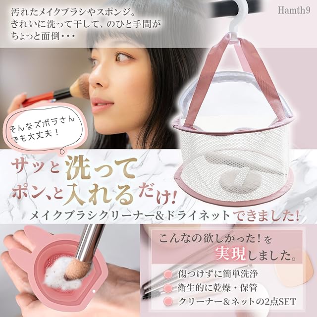 ✅【美容オタクのおすすめアイテム】濡れたブラシやスポンジを「どこに干す?」と干す場所を悩ましいですよね。 ドライネットならポンポンと入れるだけ。置くだけ。 乾かすことも、ちょっぴり保管もOK。 ズボラさんにもってこいです。
