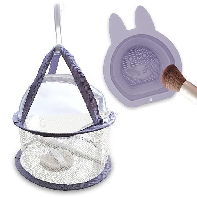 Hamth9 メイクブラシクリーナー メイクブラシ 洗浄 化粧ブラシクリーナー シリコンボウル 乾燥ネット (パープル)