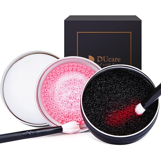 DUcare メイクブラシクリーナー ブラシ専用クリーナー洗剤 固形石けん 天然成分ヤシ油 無臭・お肌に優しい シリコンメイクブラシクリーニングマット ドライクリーニングスポンジ 洗浄カアップ 化粧筆洗浄2PC